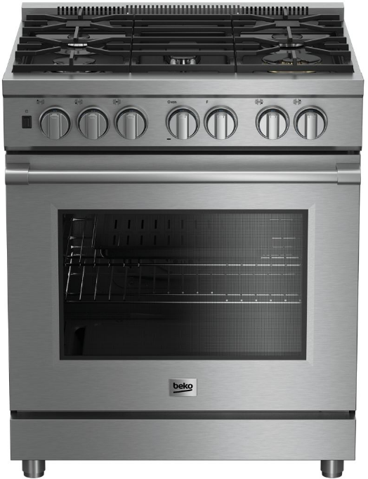 Award-winning style doesn’t have to be a fuss. With features like knob illumination, interior halogen lighting, and auto light reignition, plus an easy-clean enamel interior with a self-clean mode, this Beko gas range makes cooking a joy. Its industry-leading 5.7 cu. ft. oven is equipped with 3 heavy-duty oven racks, including a telescopic lower rack, for safe and easy handling of your heaviest dishes and cookware.