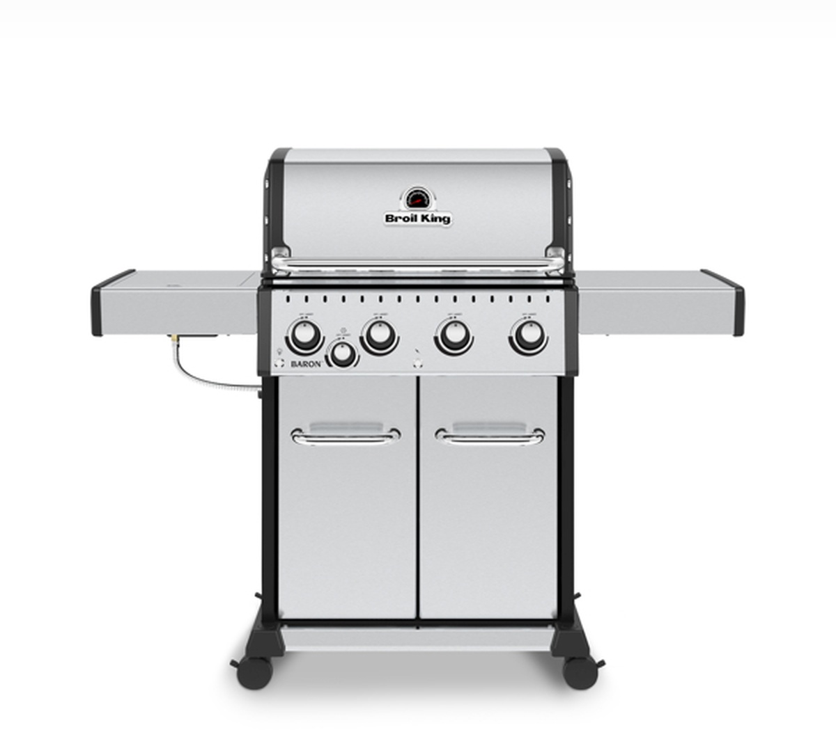 Baron™ S 440 PRO IR features 460 sq. in. primary cooking surface and includes a durable cast aluminum oven, 4 stainless steel Dual-Tube™ burners, illuminated control panel lights, stainless steel 8mm rod cooking grids, stainless steel warming rack, stainless steel Flav-R-Wave™ cooking system, and electronic ignition. The S 400 PRO IR Series features a powerful infrared side burner with solid stainless steel 8mm rod cooking grid, stainless steel drop-down side shelves, and an enclosed black cabinet base.Read More