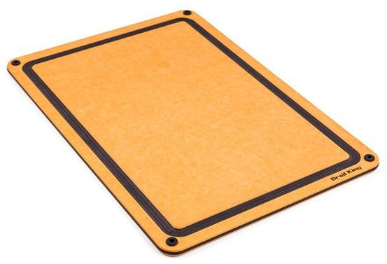 The Broil King® double sided wood fiber cutting board has an integrated moat to collect all of the juices from carving and serving. Rubber feet keep the board from sliding while chopping. Each board is designed to fit Broil King® side shelves, easy to clean and dishwasher safe.Read More