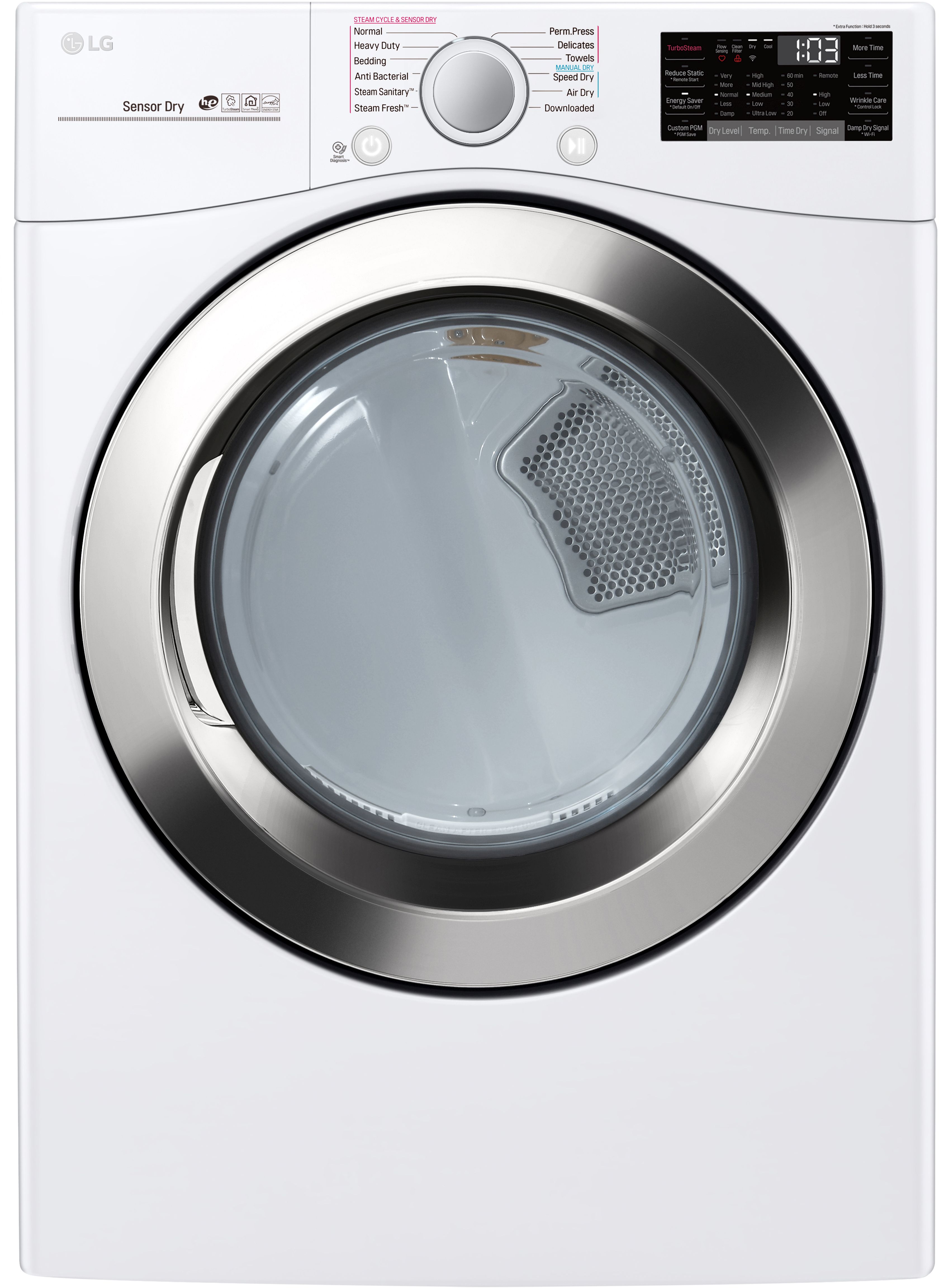 | Options | More Time, Less Time, Damp Dry Signal, Wrinkle Care, Control Lock, Custom Program, PGM Save, Wi-Fi Connect, Energy Saver, TurboSteam™, Reduce Static, Remote Start |