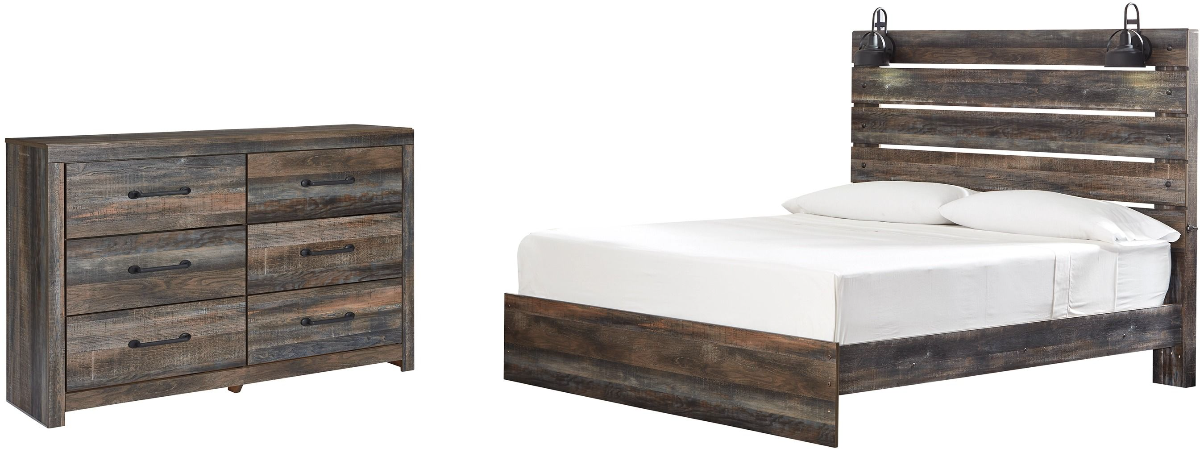 Includes bed (headboard, footboard and rails) and 6-drawer dresser