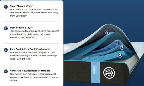 Breeze Technology - Experience proven, all-night breeze cooling with the all-new TEMPUR-ProBreeze® mattress. Featuring specialized cool-to-the-touch Breeze covers that work with our exclusive Pure Cool® material to help pull heat away from your body so you stay cooler - all night long.Read More