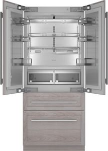 Thermador® Freedom® 36" Panel Ready Built In Counter Depth French Door Refrigerator features a ThermaFlex™ Drawer, diamond shaped ice, and an internal water dispenser with UltraClarityPro water filter. *CUSTOM PANEL & HANDLE SOLD SEPARATELY*Read More